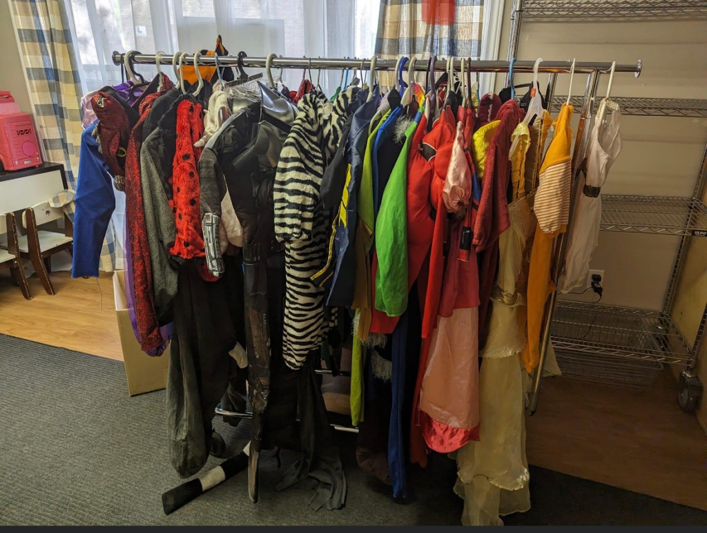 We have a rack of Halloween costumes that were donated to us